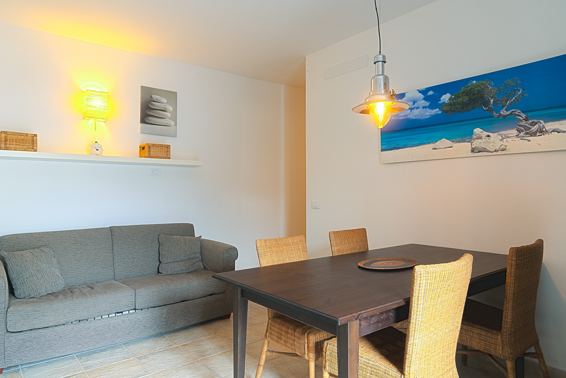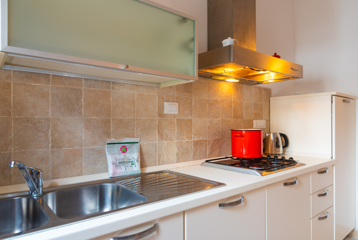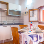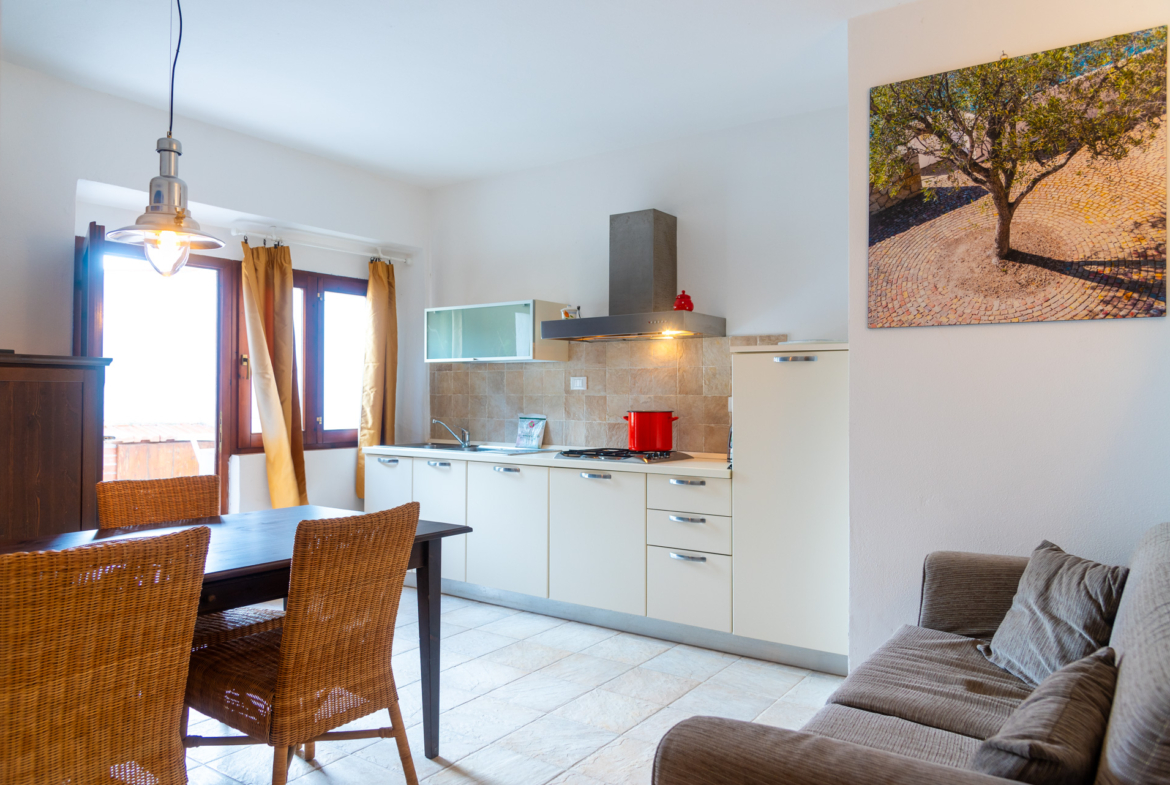 Trilocale 4 posti letto: questo accogliente trilocale di circa 55 mq è la scelta ideale per chi cerca una vacanza rilassante in un ambiente funzionale e ospitale. L’ingresso indipendente, accessibile tramite un vialetto lastricato, conduce a un soggiorno con angolo cottura, dotato di piano cottura a gas con quattro fuochi, frigorifero con piccolo congelatore e TV. La zona notte comprende una luminosa camera matrimoniale, una camera con due letti singoli e un bagno con doccia. Gli arredi sono moderni, essenziali e molto pratici.