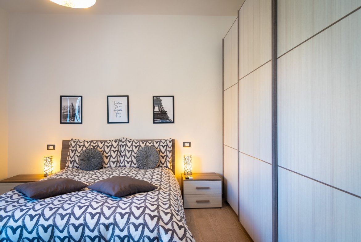 Appartamento 2/4 pax: l’alloggio molto grazioso e recentemente ristrutturato a disposizione dei nostri ospiti, misura circa 65 metri quadrati, è inserito in un fabbricato composto da più unità abitative e posizionato vicinissimo ai servizi principali. L’ appartamento al piano primo, al quale si accede da una scala interna, è composto da un comodo soggiorno con un bel divano e TV, una cucina ben attrezzata con un angolo cottura completo (fuochi a induzione, forno, frigorifero con piccolo congelatore, lavastoviglie); una comoda camera con un letto matrimoniale e TV; una camerina con due letti singoli e piccolo balcone; un bagno con doccia e lavatrice. L’ immobile è molto ben rifinito, l’arredamento è completamente nuovo, moderno e funzionale. Completano la struttura alcuni importanti dotazioni quali Wi-Fi, aria condizionata e riscaldamento. L’appartamento ha il posto auto nelle vicinanze.