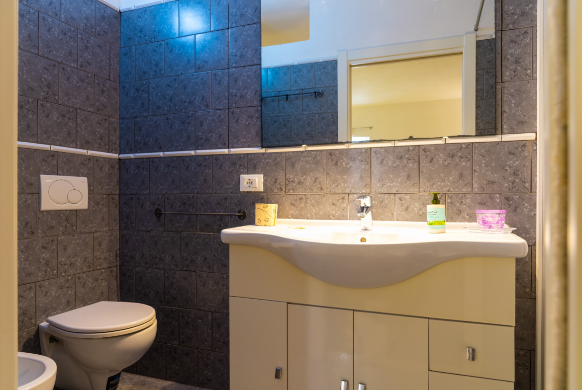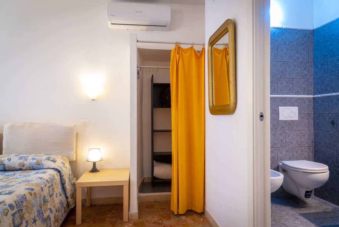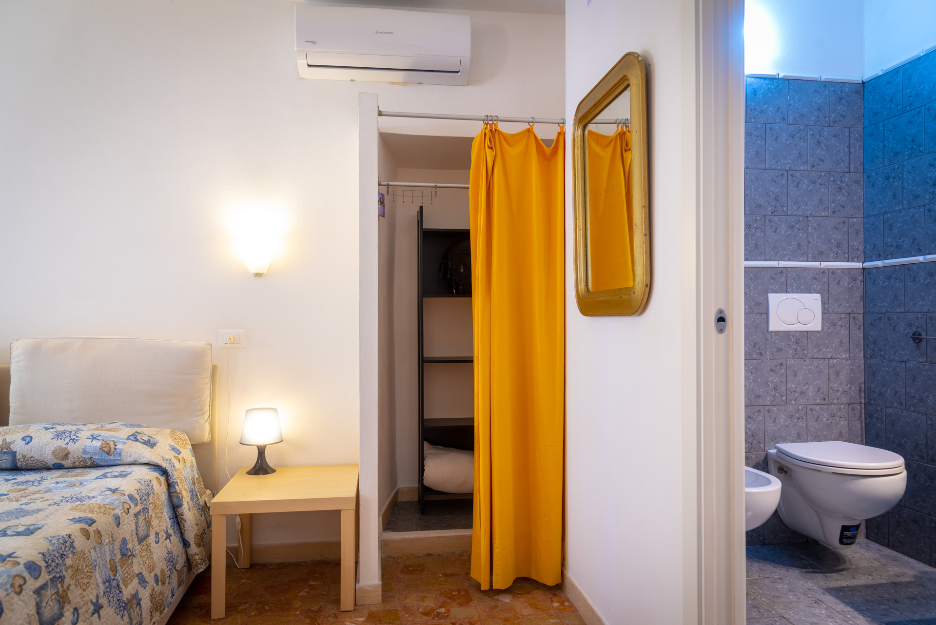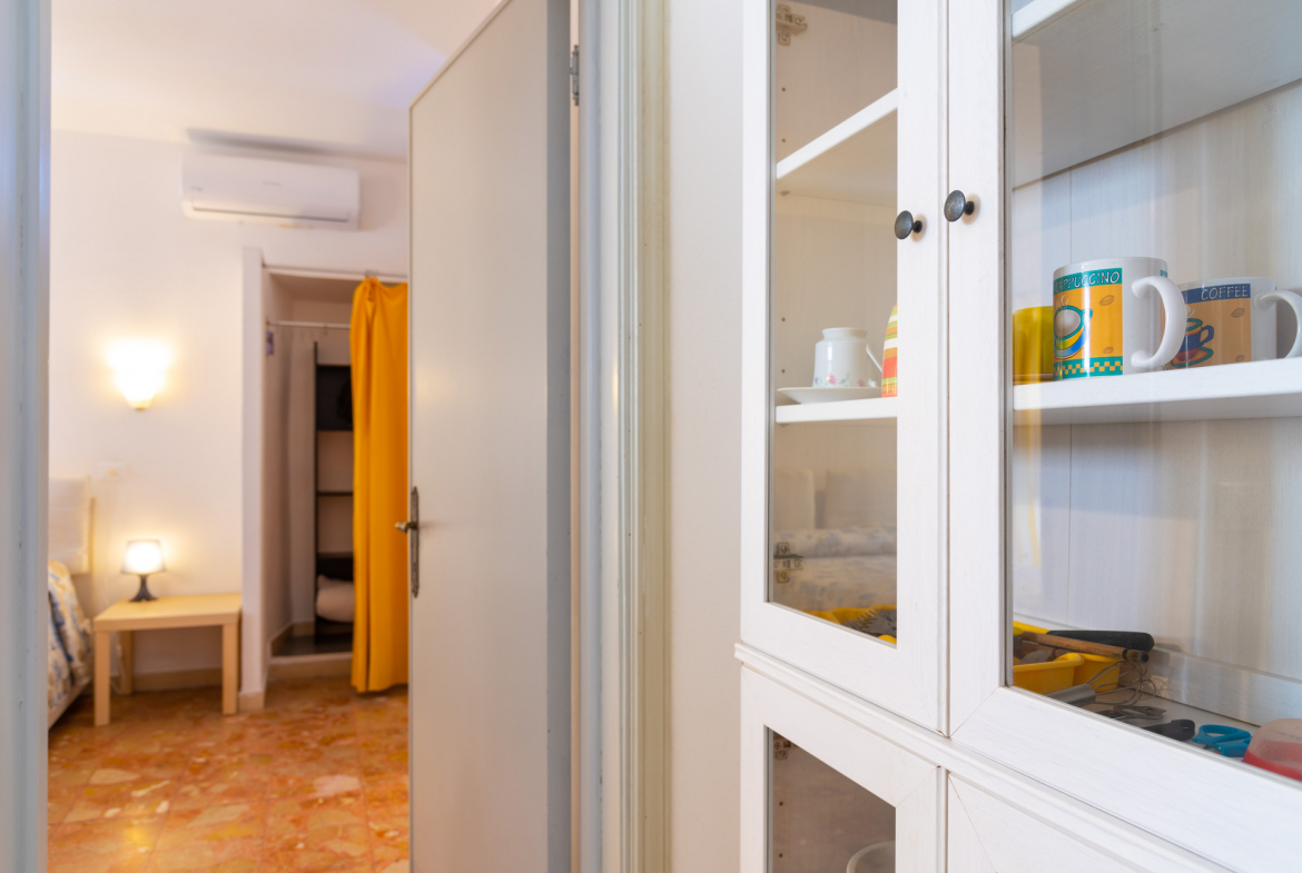Bilocale 2/3 pax: Grazioso appartamento, di circa 40 metri quadrati, al primo piano della palazzina. È composto da soggiorno con angolo cottura (attrezzato con piano cottura a induzione, frigorifero con piccolo congelatore e lavatrice) e divano letto singolo; una camera con letto matrimoniale; un bagno con doccia. Fanno parte delle dotazioni anche aria condizionata e TV. L’ appartamento non è dotato di posto auto privato, parcheggio a pagamento nelle vicinanze.