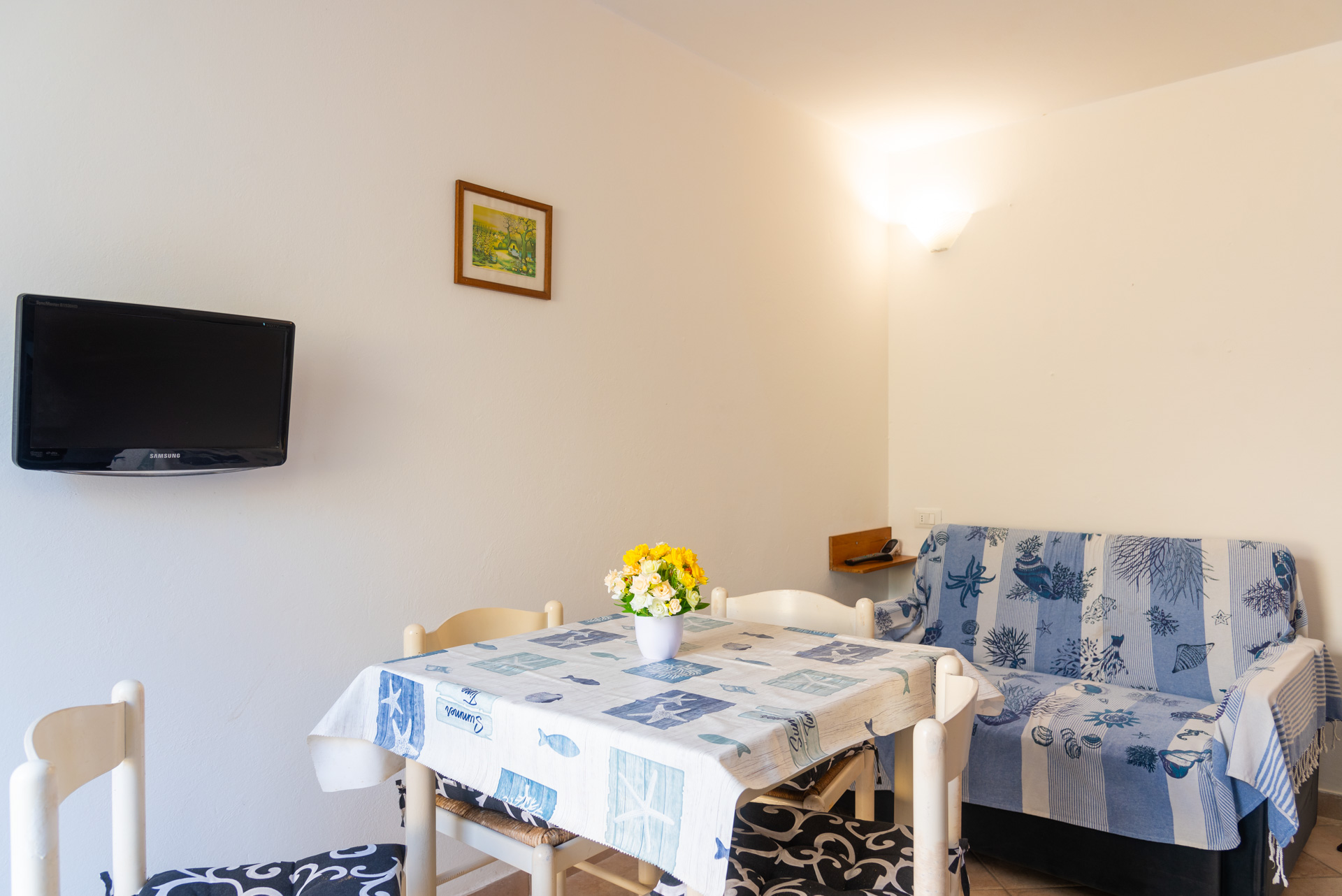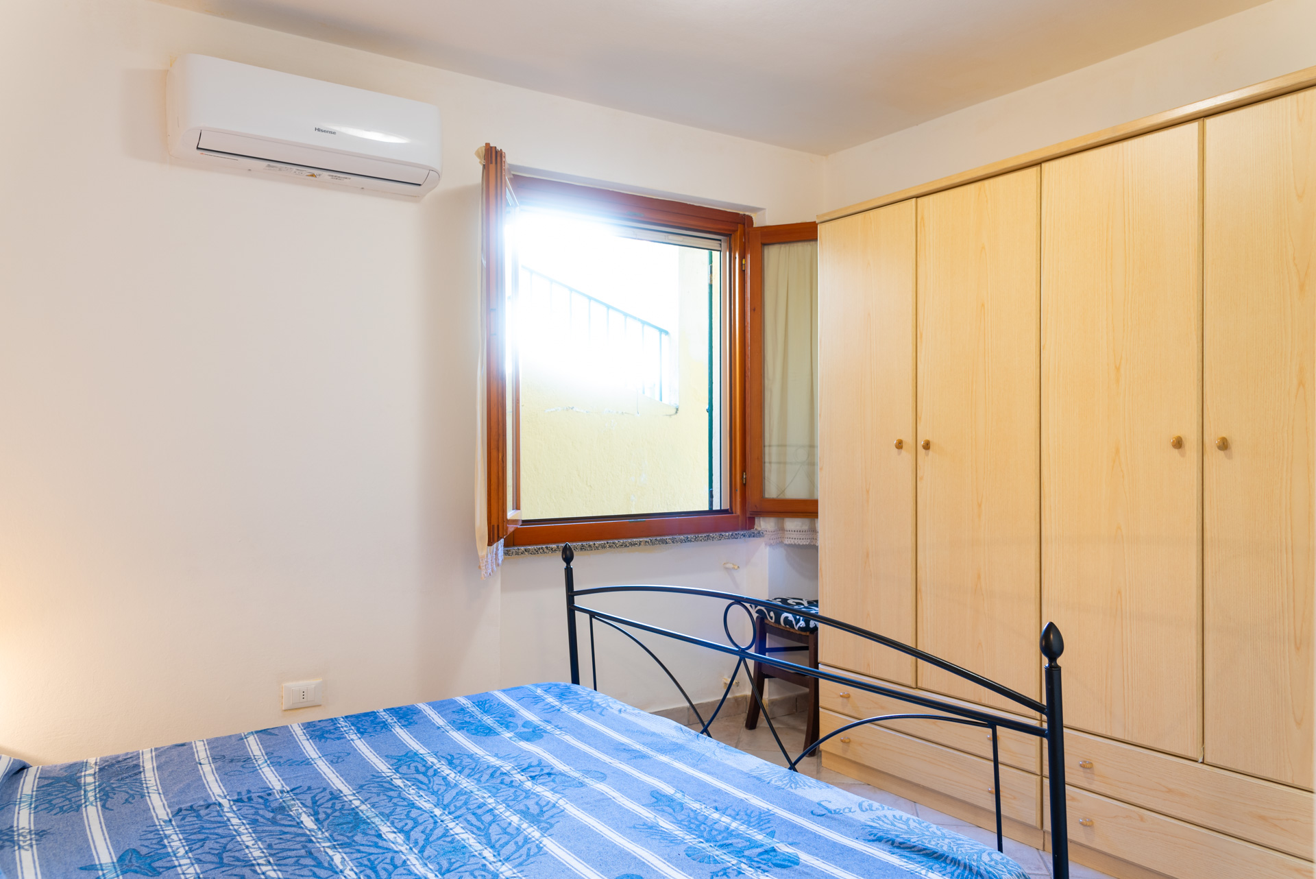 Appartamento 2/4 posti letto: Appartamento situato al piano terra interrato, dotato di ampio spazio esterno attrezzato con tavolo, sedie e gazebo, oltre a doccia esterna. L’accesso avviene tramite una scala. L’alloggio è composto da un soggiorno con comodo divano letto da una piazza e mezzo e angolo cottura completamente attrezzato (con piano a induzione a quattro fuochi, forno elettrico, frigorifero con piccolo congelatore e lavatrice). La zona notte comprende una camera con letto matrimoniale e un piccolo vano con un letto matrimoniale. Sono presenti due bagni, entrambi con doccia. L’appartamento è dotato di TV e aria condizionata nella camera matrimoniale. L’arredamento è nuovo, moderno e funzionale. Completano la proprietà due posti auto privati scoperti, situati nelle immediate vicinanze. Il percorso per raggiungere il centro del paese e le spiagge di Cavo è comodo e breve.