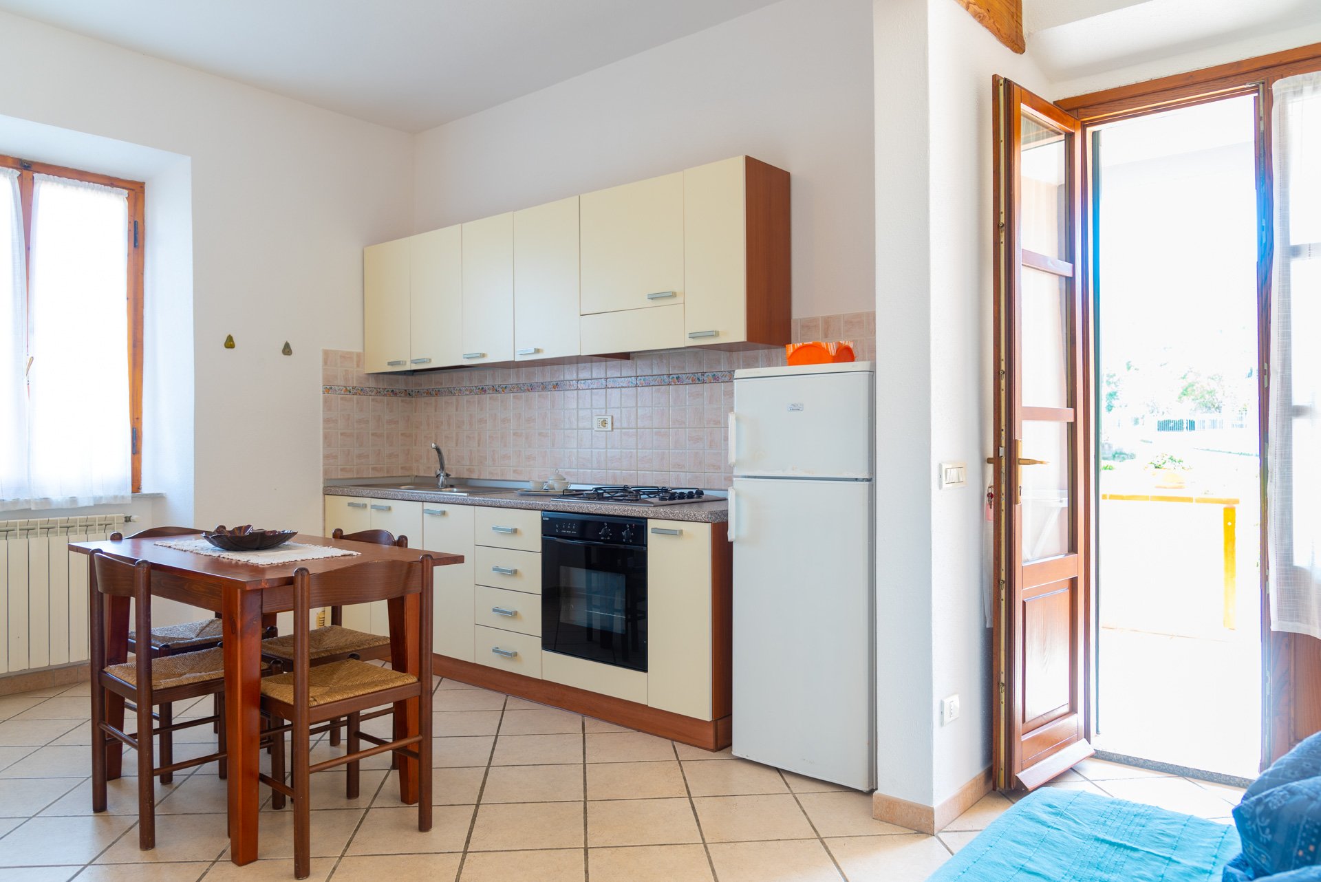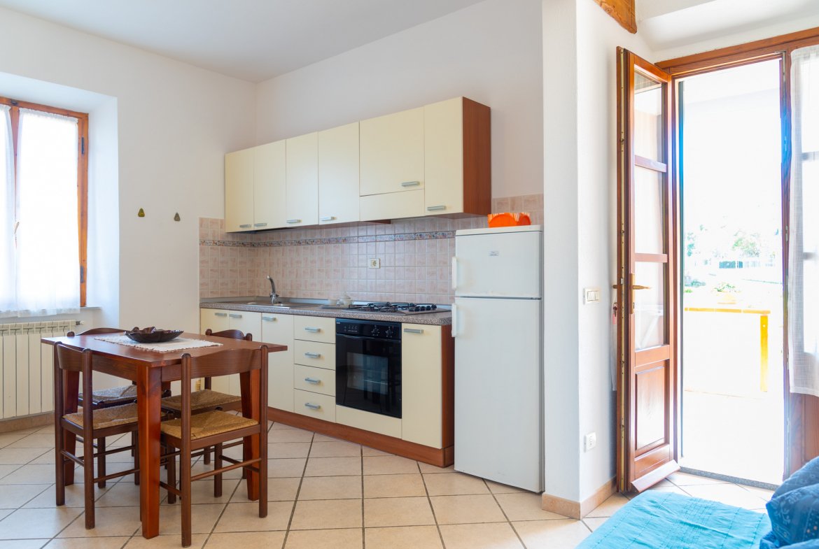 Trilocale 2/5 pax: con ingresso indipendente dal piano terreno, inserito in una palazzina di quattro unità, l’appartamento è composto da un soggiorno con angolo cottura ottimamente attrezzato (completo di 4 fuochi a gas, frigorifero con congelatore, forno), divano e TV; una camera matrimoniale; una seconda camera matrimoniale con un letto singolo; un bagno con doccia. Dal soggiorno si accede ad una ampia veranda attrezzata con tavolo e sedie per mangiare. L’arredamento è nuovo, funzionale e curato, con Wi-Fi gratuito, lavatrice e riscaldamento. Posto auto scoperto privato vicino la proprietà.