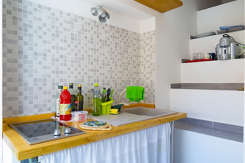 Monolocale 2 pax: al piano primo del fabbricato con accesso da scala interna a disposizione dei nostri ospiti un grazioso rifugio, di circa 28 metri quadrati, ideale per coppie. È composto da un piccolo cucinotto (attrezzato con due fuochi ad induzione, frigorifero con piccolo congelatore e lavatrice); un vano comodo con un letto matrimoniale e spazio per un piccolo tavolo con due sedie per mangiare, aria condizionata e TV; un bagno con doccia. L’appartamento non è dotato di posto auto privato, si trova un parcheggio a pagamento nelle vicinanze.