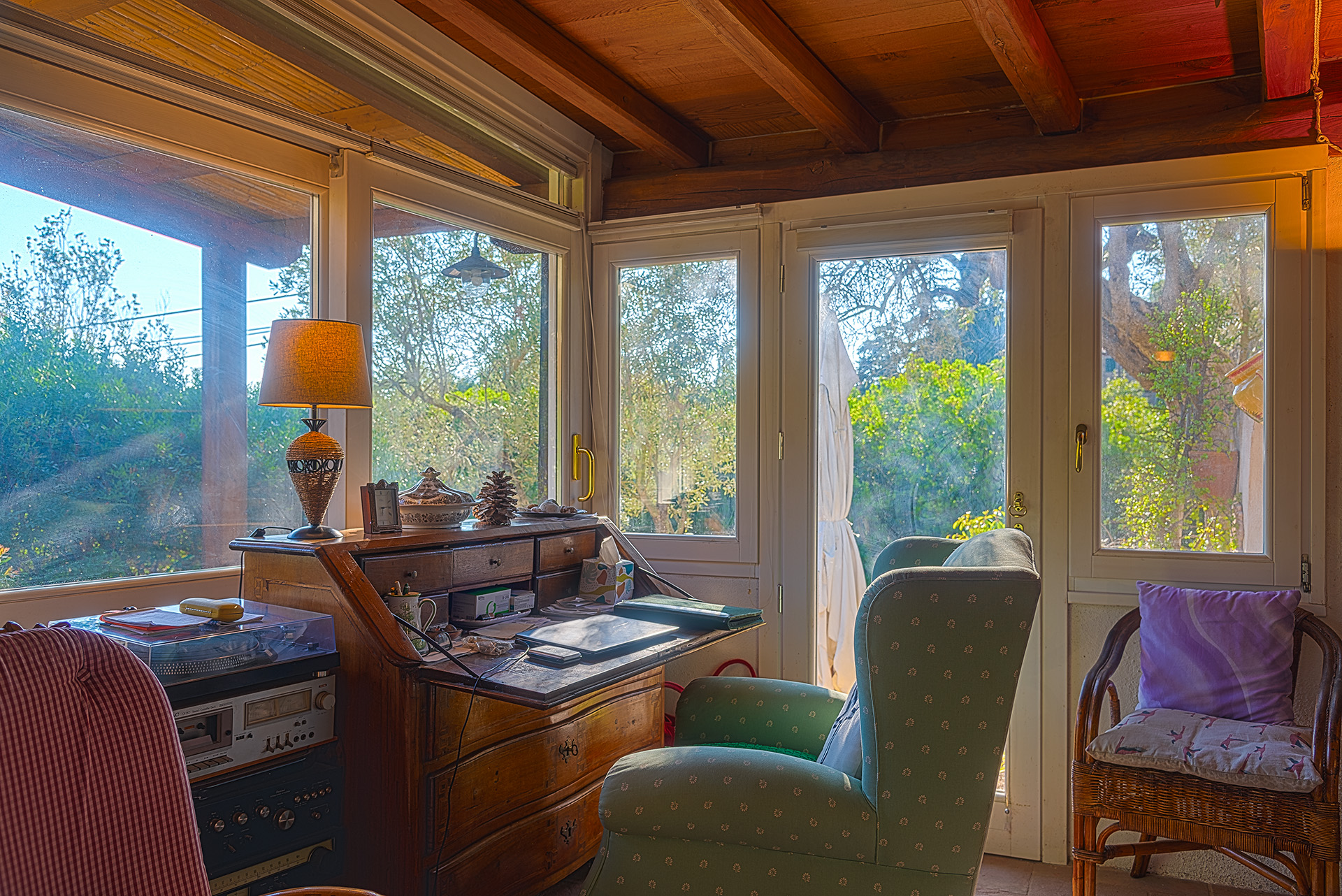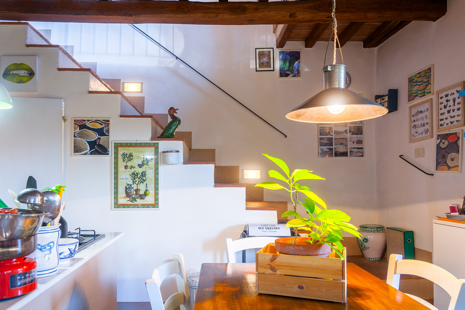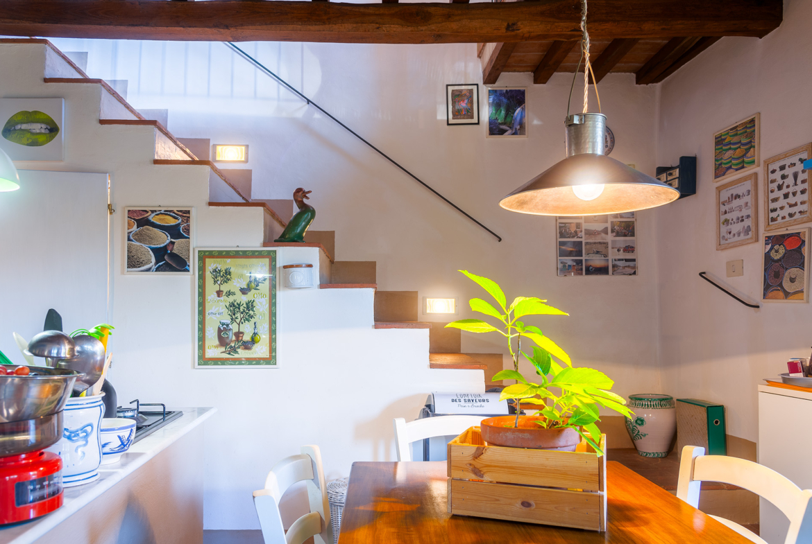 La casa si sviluppa armoniosamente ed è composta da una zona giorno che comprende una cucina luminosa con accesso a un suggestivo portico-veranda. Una scala interna porta al piano superiore dove si trova un accogliente angolo studio, una comoda camera da letto e un bagno ben rifinito. Oltre ai vani principali, la proprietà dispone di un ripostiglio interno nel sottoscala e di un ulteriore ripostiglio con ingresso indipendente, perfetto come deposito attrezzi o spazio di servizio aggiuntivo.